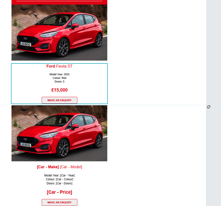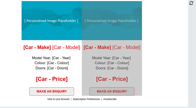 For example, instead of creating an email for each available Ford Fiesta, you could have one email with whatever car matches your Nexus journey criteria at that time! So whatever stock is available and matches what your contact wants to see will appear in the email, repeated as many or as little times as you like.