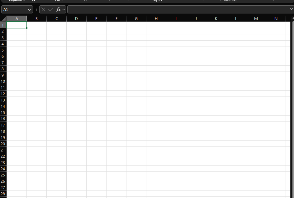 - Open a new separate blank spreadsheet file and click on cell A1.